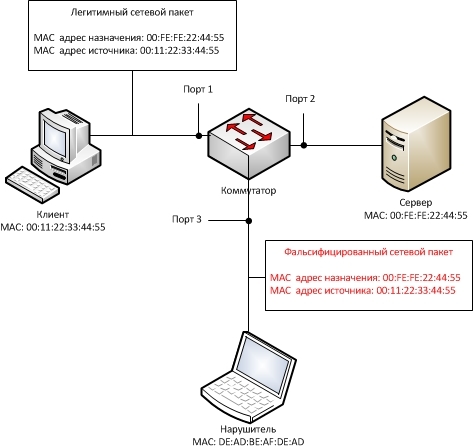 Большая часть указанных атак (по крайней мере с 1 по 10) базируется на уязвимостях архитектуры современных Ethernet/IP сетей, заключающихся в возможности Нарушителя подделывать в сетевых пакетах MAC и IP адреса. Эксплуатацию данных уязвимостей иногда выделяют в отдельный виды атак: